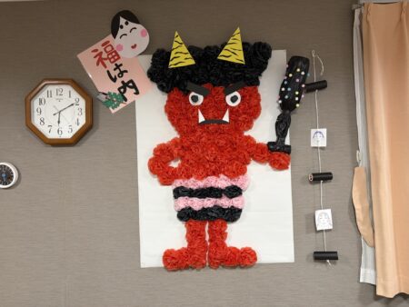 鳴海 👹エルステージ鳴海👹 2月の壁画のご紹介になります👹 2月はやはり【節分👹】ですね😊豆まきの月です 鬼、節分、恵方巻き👹 職員が下書きをした物に、ご利用者様が折り紙で貼り絵😊 素敵な共同作業になります👹😊 昔から引き継がれ...