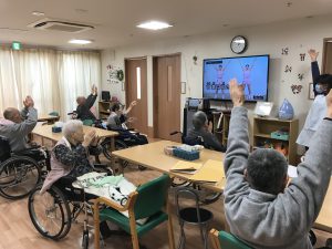 スタッフブログ カラオケで体操♬ 2018年1月4日 新年明けましておめでとうございます🎍 本年も宜しくお願いします🎍🐶 新年早々に小田井ではカラオケを使って体操です🤸♂️ 今時のカラオケは色々な機能があるのですね! 昔馴染みの曲で体操が出来るので入居者様 にも楽しみながら体操して頂けました(´∀`) エルステージ小田井