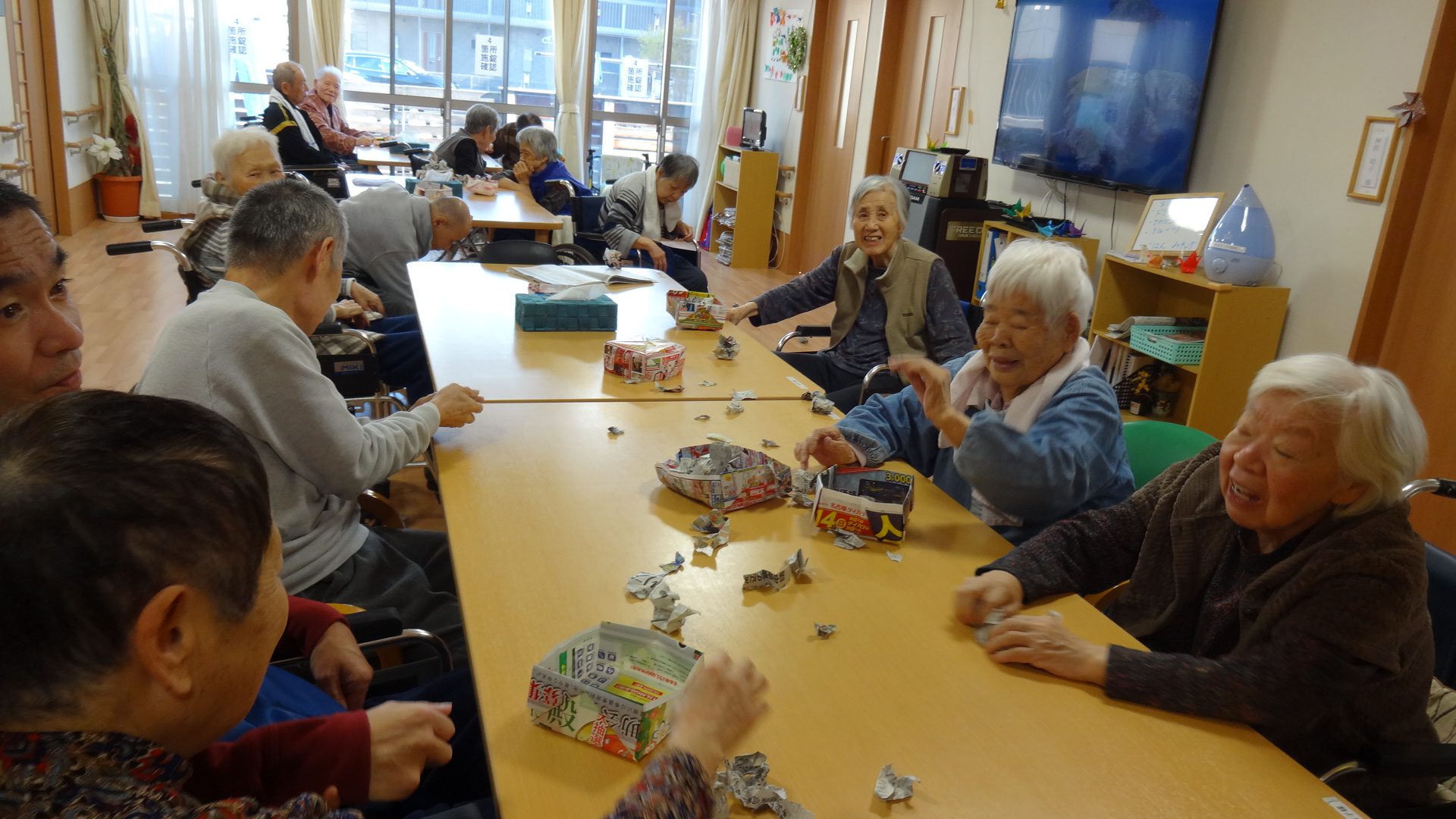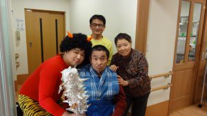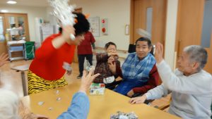 今年も入居者様お手製の新聞紙で作って頂いた「豆」で鬼退治です!*。ヾ(。>v<。)ノ゙*。*。*。*。
