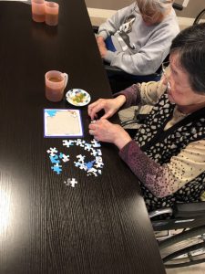 スタッフブログ パズル✩⡱エルステージ志段味₊✼̥୭*ˈ 2018年3月24日 こんにちは(๑•ᴗ•๑)♡ 花粉症の人にはとても過ごしにくいと思いますが…… 桜も咲き始め、暖かい日が続いていますね˟.˚❀ 先日、おやつを食べつつ、パズルを行いました( ´͈ ᵕ `͈ ) 皆さんパズルに集中しておやつを食べる事を忘れていますね:( *'ω'*):笑 頭の体操にもなり、皆さん楽しんでいただけたご様子(⌯¤̴̶̷̀ω¤̴̶̷́)✧ 今度はもう少し大きい物にチャレンジしていただこうかな!?と思っていますo(`・ω・´)o エルステージ志段味✿*:・゚*.˚❀