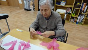 スタッフブログ (*´∀`*)笑顔満開宣言!(*´∀`*) エルステージ小田井 2018年3月28日 こんにちは! (*´∀`*)エルステージ小田井です! 27日に名古屋の桜も満開宣言がでましたね!🌸 平年より7日早く昨年より10日早い桜の満開日だそうです! 小田井でも 入居者様がちぎり絵で桜を作ってくださり・・・・・! 満開の桜が咲きました!╰(*´︶`*)╯ 入居者様も笑顔満開でした!(*´∀`*) もう一つ なにやらピンク色の紙を捩じって何かを作っておられますが・・・・・ 次回何が出来上がったのかご報告します!!٩( ‘ω’ )و エルステージ小田井