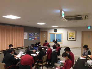 スタッフブログ 3月エルステージ志段味全体会議【事務】 2018年3月29日 お世話になります エルステージ志段味での全体会議と 講習会を行いました。 3月のテーマは「嚥下について」 嚥下のしやすい食材や誤嚥したときの 対処法のおさらいを講習として行いました。