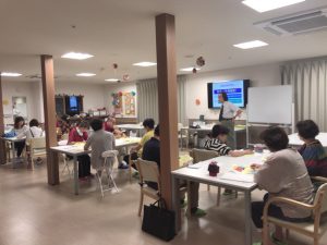 スタッフブログ 6月エルステージ名東にてメンタルヘルスケア【事務】 2018年6月27日 皆様いつもお世話になっております。 6月後半になり、より一層暑くなってまいりました。 水分補給と温度管理に気を付けて日々お過ごしください。 さて、6月のメンタルヘルスケア初回はエルステージ名東で 講習をおこないました。 今回は、大きなテーマ「認知症状の理解」を深める事により 介護者(スタッフや家族)の精神的ストレスを和らげようというお話でした。 認知症状がある利用者様がなぜそのような言動になるのか 理解することにより「なぜ」「どうして」が少なくなるという内容でした。