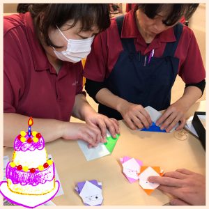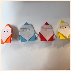 プレゼントに使う折り紙のサンタを大量に作る職員達(笑)