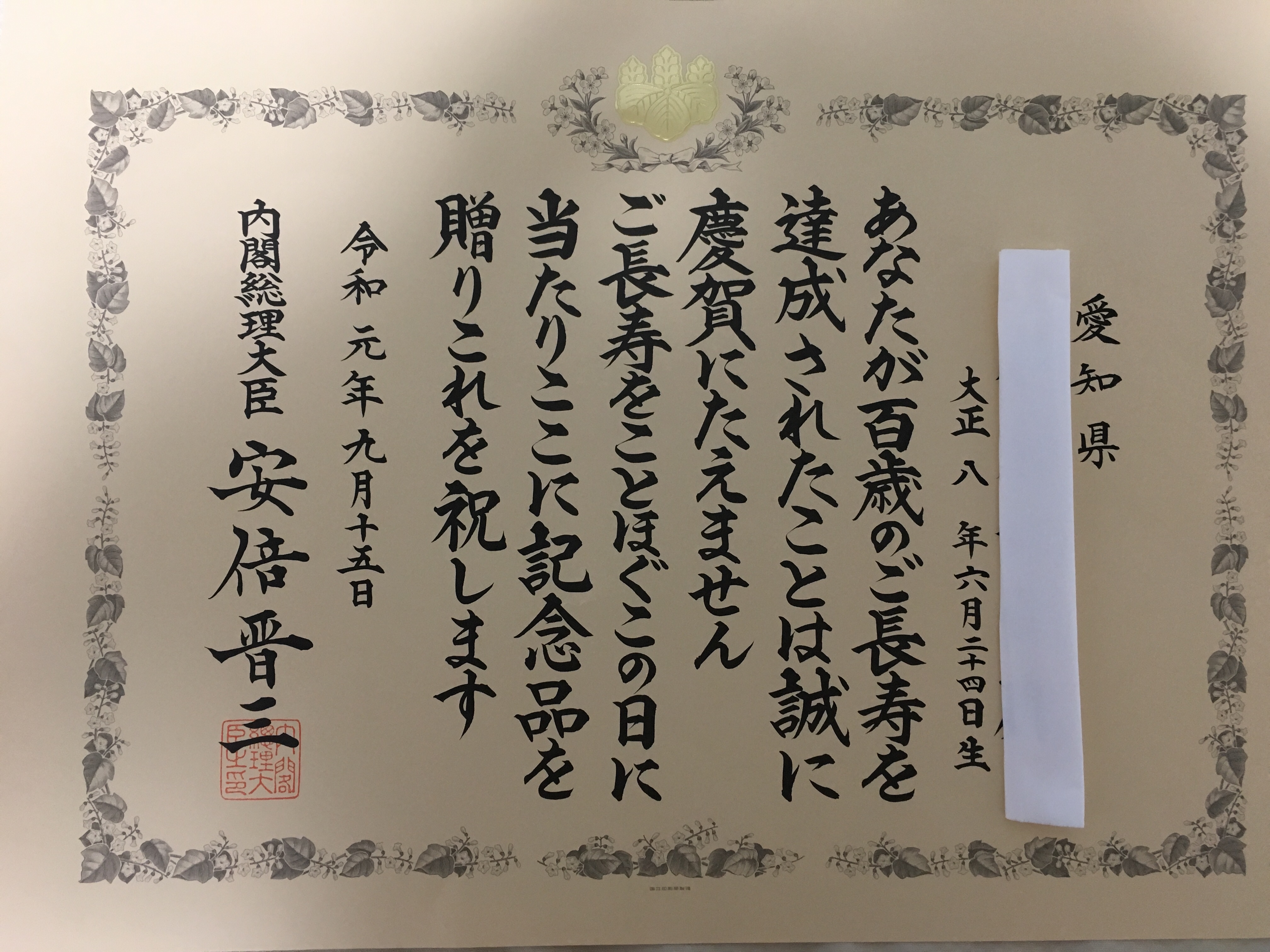 スタッフブログ 志段味 ✨✨敬老の日✨✨エルステージ志段味 2019年9月18日 こんにちは☀️ エルステージ志段味です‼️ 先日16日は敬老の日でした。利用者様のご家族もたくさん施設に来ていただき、利用者様との時間を過ごしていただきました🎶 お孫さんからプレゼントをもらっている 利用者様もいました🎁✨ 100歳という事で総理大臣から賞状と記念品が贈られた利用者様もいます‼️‼️ 非常におめでたく、素晴らしいです✨ いつまでもお元気で、長生きしてください😁 エルステージ志段味