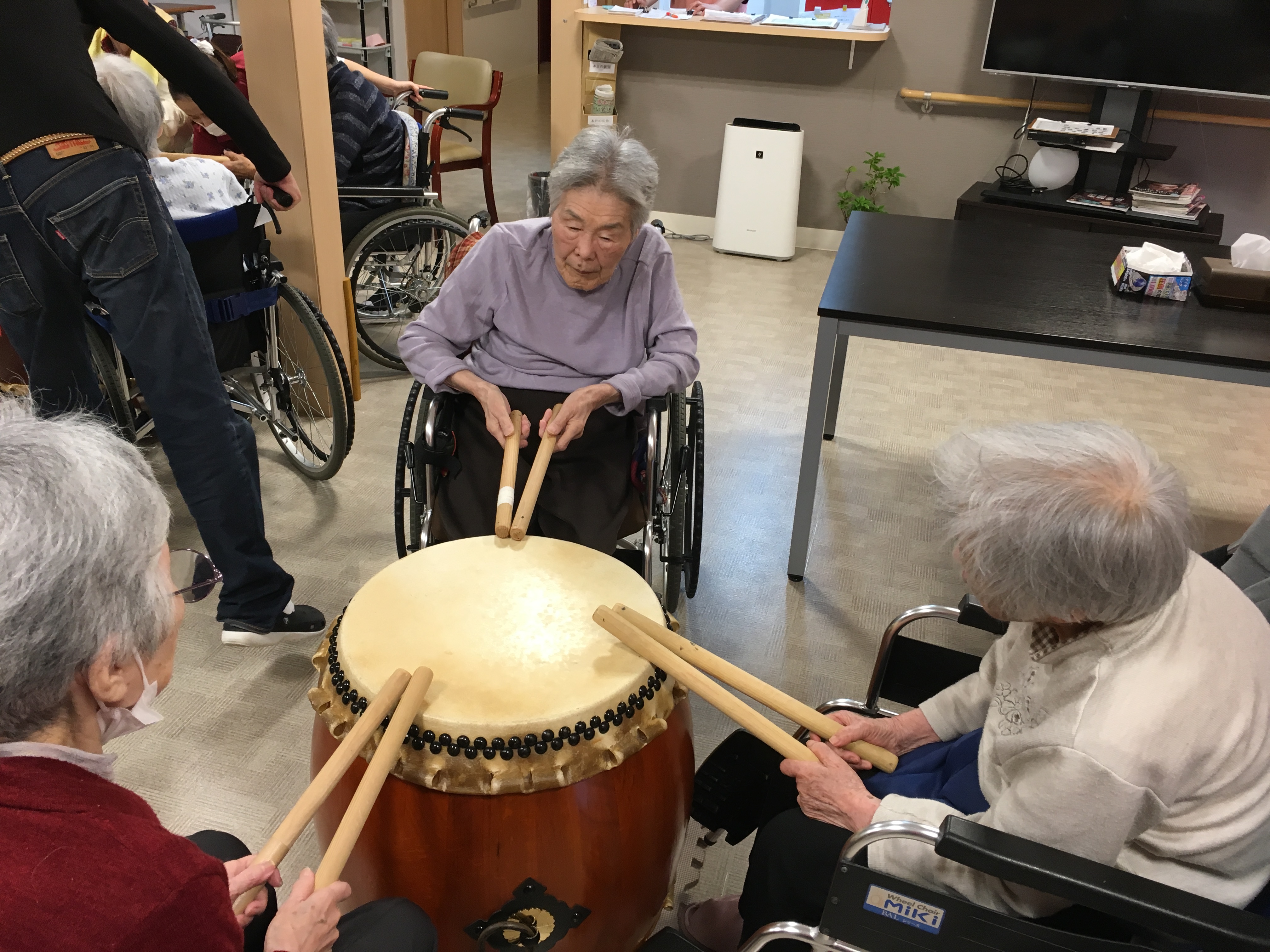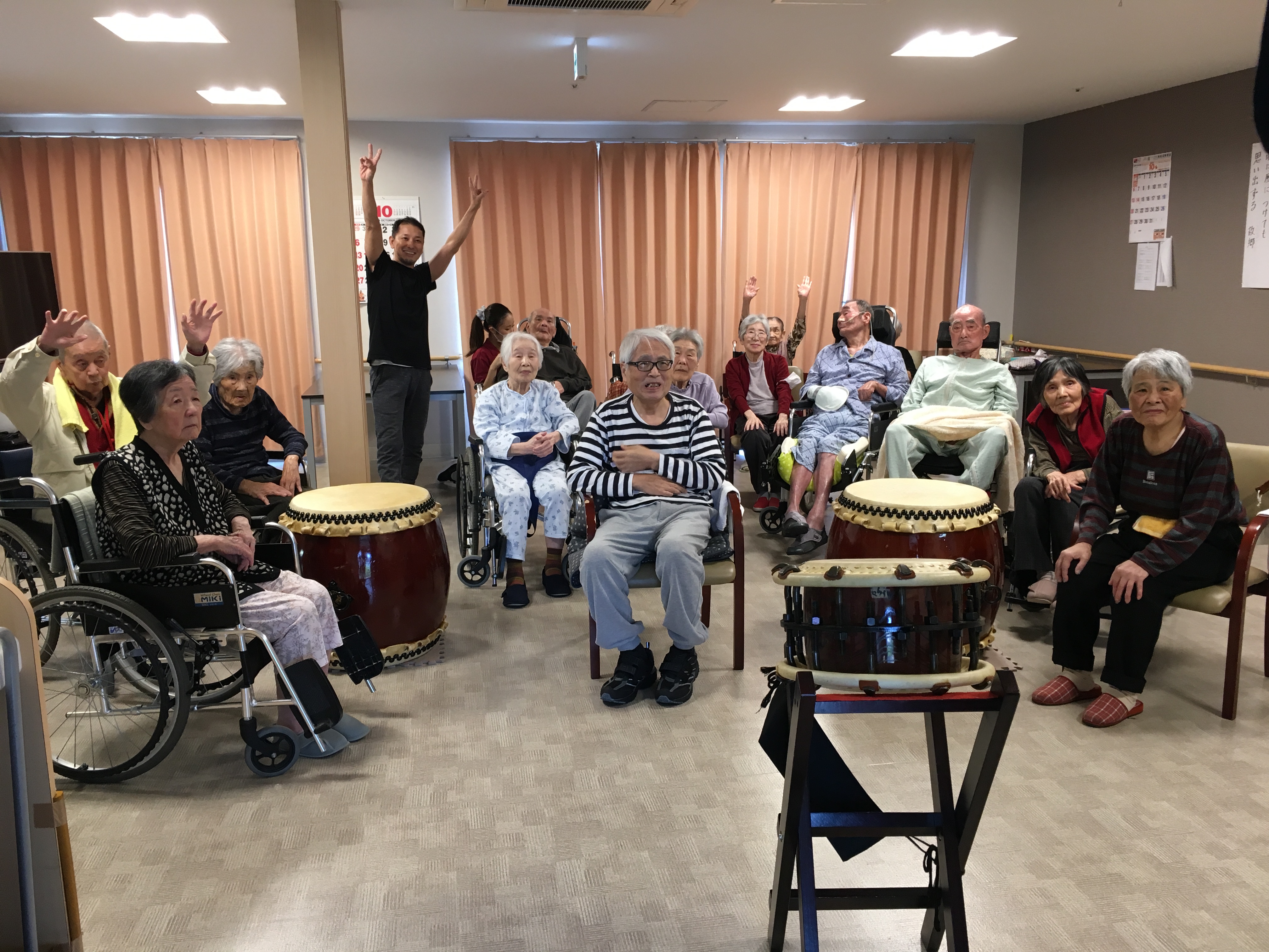 スタッフブログ 志段味 エルステージ志段味 🥁和太鼓🥁 2019年10月28日 こんにちはエルステージ志段味です! 先日和太鼓のレクリエーションがあり、 利用者様に和太鼓を叩いていただき楽しんでいただきました‼️ まずは準備体操から 先生のリズムに合わせて次はみなさんで太鼓を叩きました🎶 先生から完璧です‼️✨ の評価をいただき、みなさん笑顔たくさんでした😄😄😄 最後にみなさんで集合写真📸 太鼓と体操で少しお疲れモードの利用者様もいましたが、楽しい疲れでみなさん喜んでいただけたかと思います😁🎶 エルステージ志段味