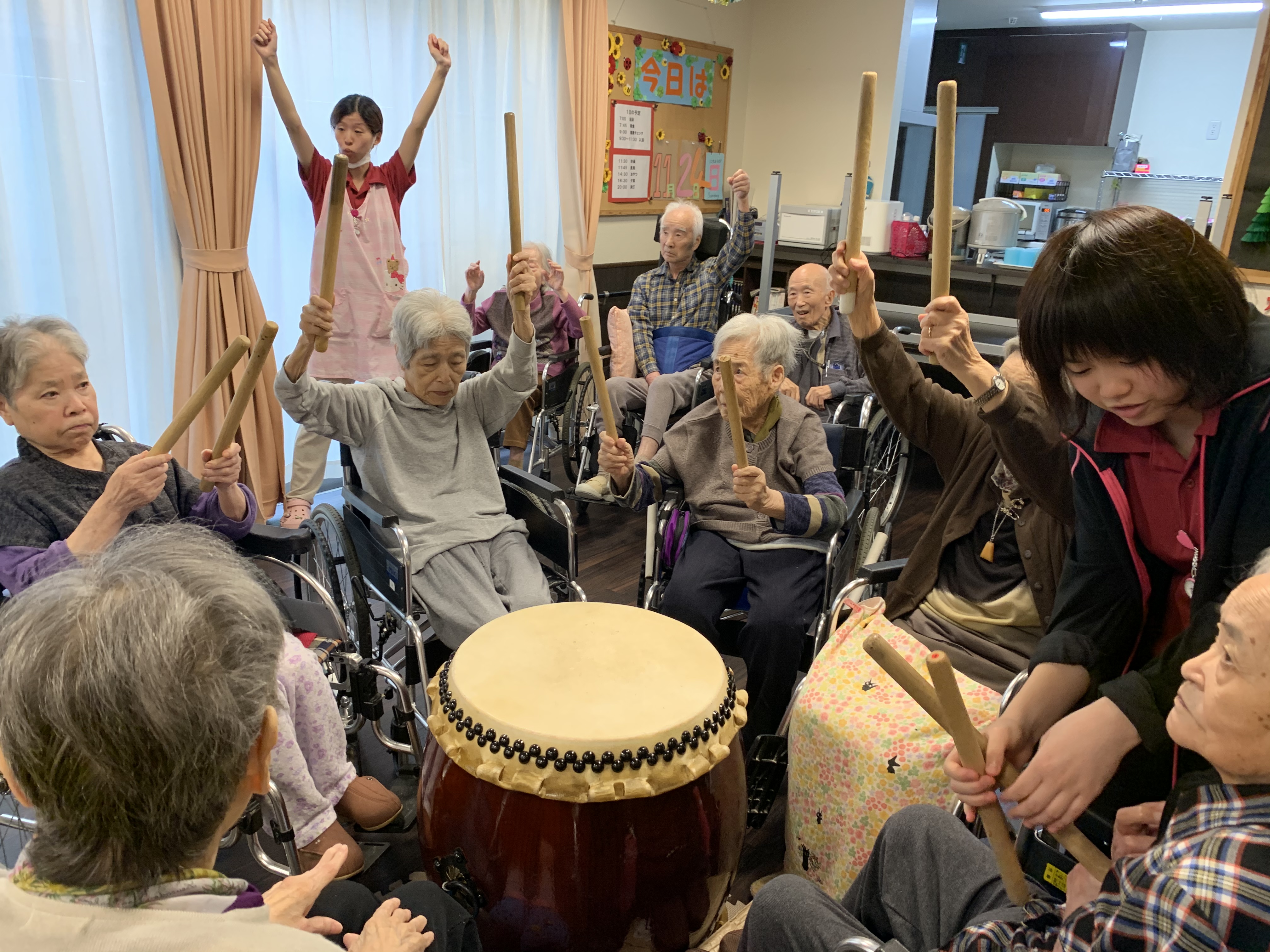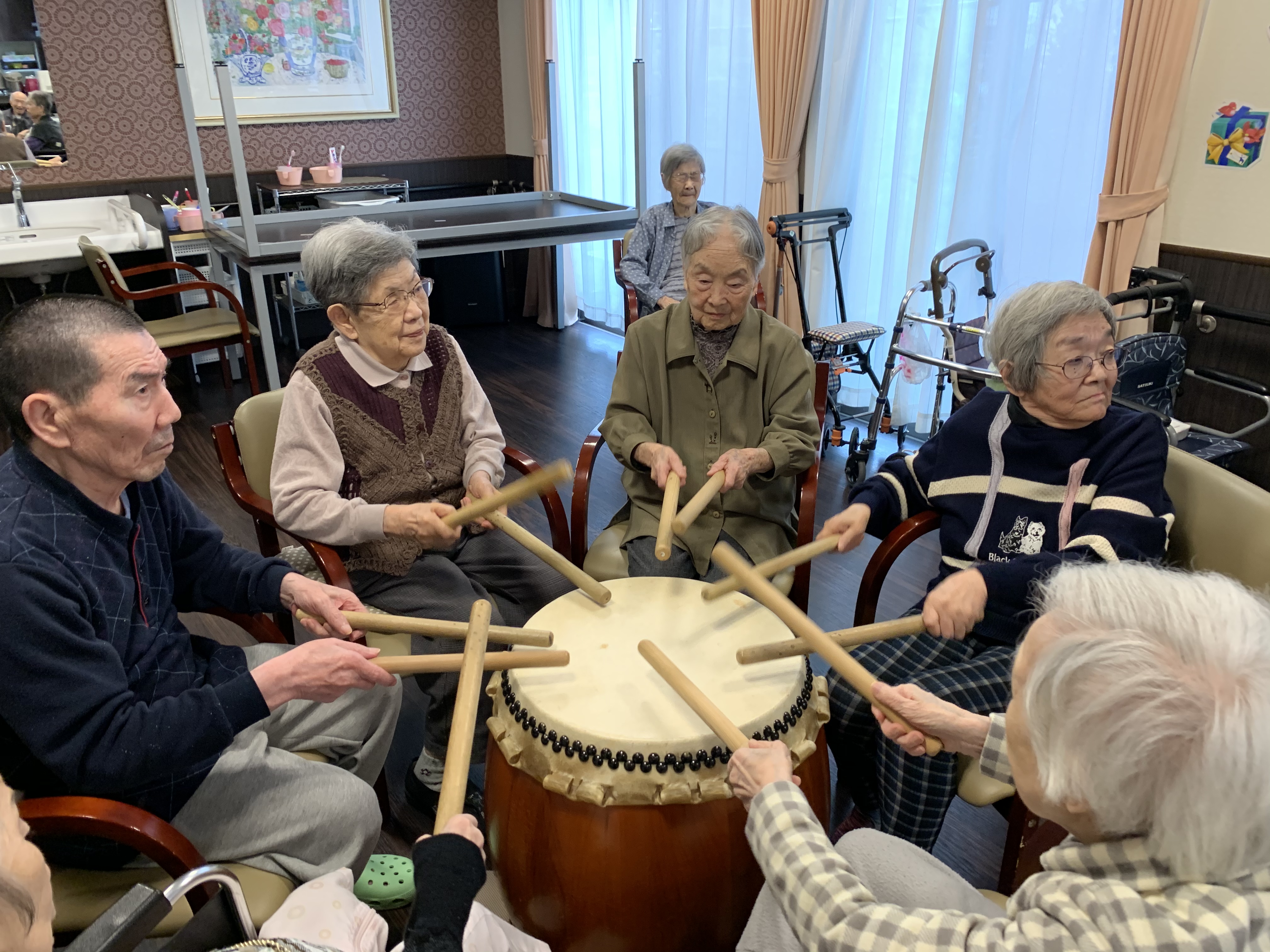 スタッフブログ 植田 🥁笑花師🥁エルステージ植田 2019年12月4日 先日、笑花師による 太鼓のレクリエーションがありました 2回目となるレクリエーションでしたが 今回もとても楽しく、笑顔沢山の 時間となりました🥁 皆さんバチを手にした瞬間から 達人になっていました☆*° 笑花師さん!ありがとうございました☆*° ( ¨̮ )エルステージ植田( ¨̮ )