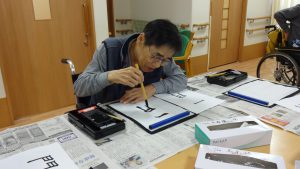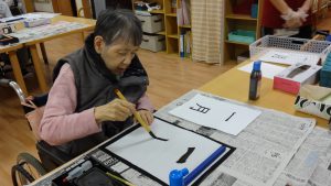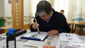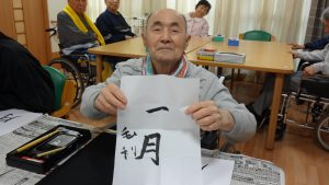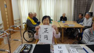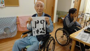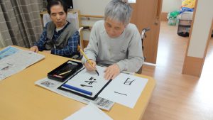 スタッフブログ 小田井 書初め♪エルステージ小田井 2020年1月4日 年の始まりということで、書初めに挑戦しました。 始まる前は、「絶対にやらん」、「1枚しか書かん」等、消極的な方が多かったですが、 始まると、やらないと言った入居者様も書き始め、1枚しか書かないと言った入居者様は、 下書きで6枚書いてました。 皆さん大変上手に書いて頂き、フロアに飾らせて頂きました!