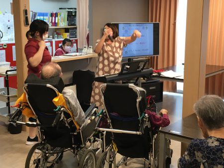 スタッフブログ 志段味 🎶✨レクリエーション✨🎶 エルステージ志段味 2020年7月1日 こんにちは☀️ エルステージ志段味です‼️ 6月30日にシルバーリトミック 〜カラオケと伴奏を使って歌おう〜 有名なCMを手掛けている方に来て頂き 利用者様と歌を歌いながら体を動かしたり盛り上がって頂きました🎉✨ 歌いながら手を入れ替えて動かす動作はスタッフも戸惑いながらやっていました😅(笑) しっかり声を出して、たくさん体を動かして、美味しいご飯を食べたいと思います🍴✨ エルステージ志段味