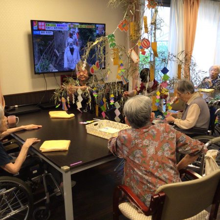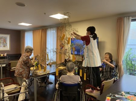 スタッフブログ 植田 🎋エルステージ植田🎋 2021年7月8日 7月7日は七夕🎋 今年も大雨で、天の川は見れませんでしたが エルステージ植田では、 沢山の願い事が笹に飾られました🎋 短冊を一枚一枚笹の葉につけました🎋 高いとこはスタッフの手で🎋 沢山の飾り付けされた笹の葉🎋 🎋美味しいものたくさん食べたい 🎋家族に会えますように 🎋100歳まで元気にすごせますように 🎋毎日笑っていられますように 昔は七夕が終わったら、笹の葉を川に流していたね!と、 昔話もされ、楽しい時間になりました🎋 お昼ご飯は、七夕うどんでした😊 来年は、晴れますように☀️ エルステージ植田🎋