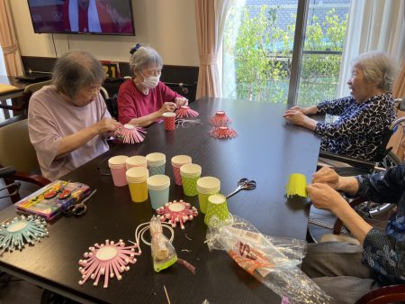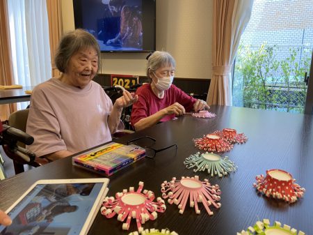 スタッフブログ 植田 🎆エルステージ植田🎆 2021年7月30日 こんにちは☀️ 今日も一日暑い日でしたが 利用者様は今日もお元気です✨ 今日は利用者様と一緒に紙コップを使い花火を作りました🎆 紙コップを切って… 切った先を棒で丸めて… 花火の完成です🎆 綺麗に出来たね✨ 来月の飾りが楽しみ✨ いい思い出ができたわ✨ と、楽しんでいただけました☺️✨ 今日の夕食は、ちらし寿司でした✨ 皆様喜んでいました😊 🎆エルステージ植田🎆