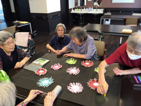 スタッフブログ 植田 🎇エルステージ植田🎇 2021年7月31日 こんにちは✨ 7月も今日で終わり、明日から8月ですね✨ 今日はご利用者様と一緒に8月の壁画を作りました! 昨日作った花火を紙に貼り付け… 紙に色々な絵を描いて… 完成です✨ ここに貼った方が綺麗じゃない? ここにあの絵描いたら賑やかになるんじゃない? など、ご利用者様皆様話し合い作成してくれました😊✨ また皆様といろいろなものを作りたいですね☺️ 🎇エルステージ植田🎇