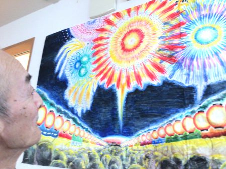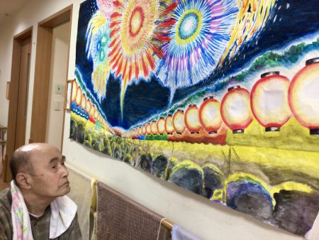 スタッフブログ 小田井 エルステージ小田井にドカーンと 🎆🎇打ち上がりました❣️ 2021年8月7日 1人の介護スタッフより、「描いてきてもいいですか?」と 申し出があり お願いしたところ 立派な花火が打ち上がりました🤩 色んな角度で見てみたり、 ジーッとみつめたり..... 皆さん 夏の風物詩に釘づけでした🎶