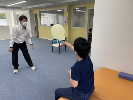 また午後からはストレッチを行い室内を歩行訓練された後、風船バレーをして楽しまれました👍