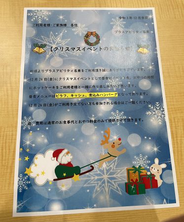 スタッフブログ プラス名東 プラスアビリティ名東 ご利用の様子とご案内😊 2021年12月13日 こんにちはプラスアビリティ名東です☺️少しづつ利用者様と作ってきたクリスマスリースが完成しました٩( 'ω' )و 創作中はどんな感じになるのかドキドキしていましたが完成した物を見たら…🎵 凄く綺麗に出来て利用者様も喜んでみえました🎄 そしてプラスアビリティ名東では12月24日(金)にクリスマス会を行います🎅 クリスマス会の日も体験利用して頂けますので是非ご利用下さい😁 尚、12月21日(火)までにご連絡頂ければお食事の準備もさせて頂きます。