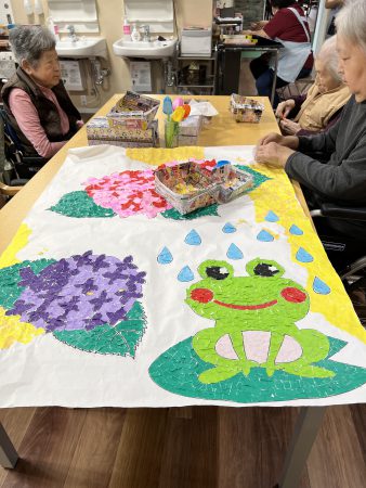 スタッフブログ 鳴海 エルステージ鳴海 🐸6月の壁画作り☔🐸 2022年5月29日 こんにちはエルステージ鳴海です😄 ご利用者様が一生懸命作ってくださった 6月の壁画が出来上がりました✨ 初めは真っ白な絵も🐸 どんどんカラフルになっていきます😊 出来上がりはこちらでーす🐸✨ じゃーーーん🐸🐸🐸✨✨✨ カラフルな壁画が出来上がりました✨ 🐸↓↓↓🐸 可愛いカエルがニッコリ笑って イヤな梅雨を吹き飛ばしてくれそうです😊 エルステージ鳴海でした🐸☂️☔️🍬