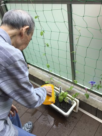 スタッフブログ 豊田 朝顔咲きました🤗エルステージ豊田 2022年7月17日 こんにちは!エルステージ豊田です😊 雨の日以外、入居者様達が一生懸命お水を撒いてくれています♬ 朝顔が咲いている時の当番さんは、スタッフと一緒に喜んでくれて楽しそうです💖 ゴーヤは‥‥収穫できるのでしょうか😓 7月17日 エルステージ豊田でした!