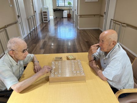 スタッフブログ 鳴海 エルステージ鳴海🀄👴🀄 2022年7月22日 こんにちは☀️エルステージ鳴海です😊 毎日暑い日が続いていますが みなさん体調も崩さず 元気に過ごされています😊 今日は将棋の真剣勝負をしているご利用者さまです✨ おふたりで話しながら楽しそうに していました😆 どちらが勝っても負けても 最後は2人で笑いあっていました😊 とてもいい時間でした😊😊😊 エルステージ鳴海🀄