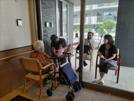 スタッフブログ 名東 😊面会😊 エルステージ名東 2022年9月21日 先日、ガラス越し面会を行いました。 暑い中、お孫さんも来てくれて、利用者様も凄く嬉しそうでした。😊 面会に携わる事ができ、家族様とも色々話せる事が増えたり、お孫さんの成長を見れて、嬉しいです。✨ エルステージ名東✨