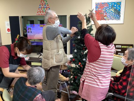スタッフブログ 鳴海 ✨🎅🏻エルステージ鳴海🎄✨ 2022年12月11日 こんにちは✨エルステージ鳴海です😊 先日、スタッフとご利用者様と 一緒にクリスマスツリーの飾り付けをしました 高い所は背の高いご利用者様にお任せ😉✨ みんなで飾り終えて はいチーズ📸 ̖́- 綺麗に出来上がりました✨ クリスマスが楽しみですね🎄✨ エルステージ鳴海🎅🏻✨🎄