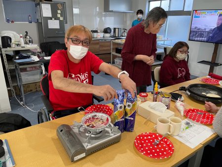 プラス名東 プラスアビリティ名東😊クリスマス会🎄 2022年12月23日 こんにちは😃プラスアビリティ名東です♪ 本日、クリスマス会を行いました✨ 本来この曜日に来ない方も事前にお知らせをすると来てくださいました😊 クリスマスの音楽をかけながらホットケーキを皆さんと一緒に作りました♪ 緊張の一瞬… お店で出てくるような出来栄えになりました✨ 消毒や衛生面は特に気をつけ、1年を締めくくる盛大なクリスマス会になりました✨ ポップコーンも作りました🍿