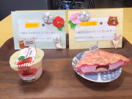 スタッフブログ 豊田 エルステージ豊田 誕生日会🎂🎉 2023年1月28日 こんにちは😄エルステージ豊田です。 本日は1月生まれの利用者様の誕生日会を行いました🎂✨ 誕生日の曲を流し、いつもと違うおやつに皆さん喜ばれていました🤗🎉 誕生日おめでとうございます🙇♂️🙇♀️ お誕生日カードも配りました🥳✨✨ これからもずっとお元気で居てください😄🎶 エルステージ豊田