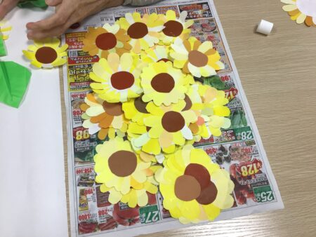 スタッフブログ 岩倉 エルステージ岩倉ひまわり🌻 2023年7月28日 こんにちは、エルステージ岩倉です。 本日はひまわり作成の模様をお送りします。 ひまわり畑が完成しました😊 利用者様のキラキラした笑顔の様なひまわりの花をたくさん咲かせました。 みんなで少しずつ張り付けた作品です。 ご家族様の中には、ひまわりを育てた事のある方はいらしゃいますか? まだまだ暑い日☀️や突然の夕立⚡️などありますが、体調には気をつけて行きましょう‼️ 以上エルステージ岩倉でした。