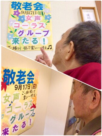 スタッフブログ 小田井 エルステージ小田井 楽しみな敬老会😊 2023年9月15日 敬老会に向けて模様替えをしました🍁 そして、敬老会へ向けて歌の練習も🎶 スタッフ手作りのポスターに入居者様が ワクワクしてみえます。 素敵な敬老会にしたいと思います✨✨