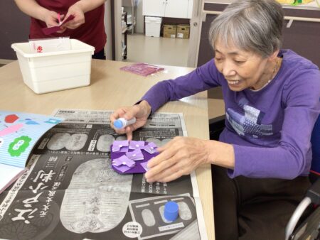 スタッフブログ 岩倉 季節の壁飾りを製作中♪♪ 2024年5月14日 こんにちは、エルステージ岩倉です。 昨日の肌寒さとはうってかわり、今日は青空が一面に広がり気持ちの良い日になりました。 気温のアップダウンが大きく体調管理が難しい日々ですが、利用者の皆さまは元気にお過ごしです。 間もなく訪れる梅雨時期に、少しでも明るい気持ちで過ごして頂けるよう、可愛らしい季節の飾りを製作中です。 職員も利用者様も穏やかな時間を過ごせました。