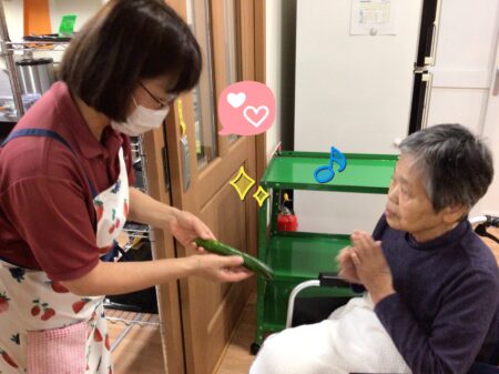 スタッフブログ 小田井 エルステージ小田井 収穫しました🥒❣️ 2024年6月26日 先日から、スタッフと入居者様で育てていたきゅうりを収穫して ほんの少しずつですが、夕食に皆様で召し上がって頂きました☺️ 皆様、美味しそうに召し上がっていました✨✨✨✨