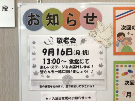 スタッフブログ 岩倉 敬老会にむけて♪エルステージ岩倉 2024年9月12日 9月16日、利用者様への労いの気持ちを込めて、敬老会を行う予定です。 職員がお届けするステージや、利用者様と一緒に歌って楽しい会にしたいと思っています。 当日に向けて、歌の練習をしています^ - ^ 以上、エルステージ岩倉でした。