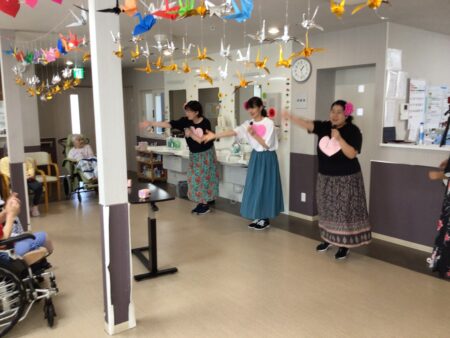 スタッフブログ 岩倉 敬老会⭐︎エルステージ岩倉 2024年9月17日 こんにちは、エルステージ岩倉です。 先日、利用者様の長寿をお祝いする敬老会を開催しました。 黒柳徹子さんの司会で、キャンディーズ、舟木一夫さん、石原裕次郎さん、山本リンダさんと往年のスターが駆けつけてくれ、その場の雰囲気は最高潮に。 続いてギターの弾き語り。 最後は全員で「ふるさと」を合唱しました。 皆さん大笑いでとっても楽しい会になりました。 以上、エルステージ岩倉でした。