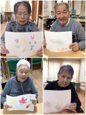 スタッフブログ 小田井 エルステージ小田井 芸術の秋🎨 2024年10月26日 こんにちは、エルステージ小田井です♪ 秋をテーマに皆様に絵を描いて頂きました。 「絵なんて描けないわ」「苦手だよ」と言われる入居者様もおら れました。いざクレヨンを持つと「久しぶりだわ」「あなたの色 使い良いね」と楽しくおしゃべりしながら素敵な作品が完成✨ 皆様の作品を展示しました♪ エルステージ小田井では、秋の作品展開催中です♪ これからも入居者様と一緒に色々な秋を、見つけて 楽しんでいきたいです😊