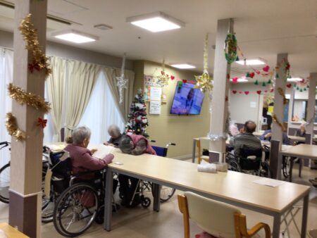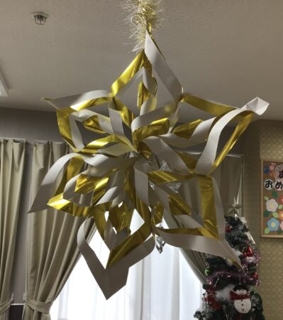 スタッフブログ 岩倉 いよいよクリスマス会🎄エルステージ岩倉 2024年12月16日 こんにちは、エルステージ岩倉です。 今週のクリスマス会に向けて、飾り付けがバージョンアップされました。 利用者様もとっても楽しみにされています。 この飾りは折り紙6枚でできています。 キラキラ⭐️しててとっても華やかになります。 職員はクリスマス会で披露するハンドベルを練習中です。 本番さながらの後ろ姿です(笑)