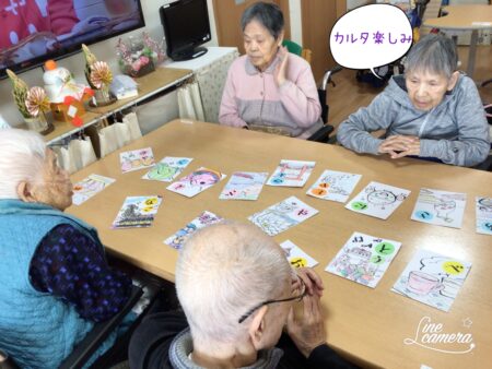 スタッフブログ 小田井 エルステージ小田井 新春カルタ大会 2025年1月17日 こんにちは♪エルステージ小田井です 本日は、新春カルタ大会を開催しました😊 入居者様の出身県の名物をテーマに作った小田井オリジナルカル タです♪皆様、絵札をよく見て集中しておられました💖 「熊本のスイカはおいしいよ」「たくさん取って上手ね」 と楽しいお話しがはずみました♪ これからも、入居者様が穏やかな毎日を過ごせるよう 思いに寄り添っていきたいと思います💖