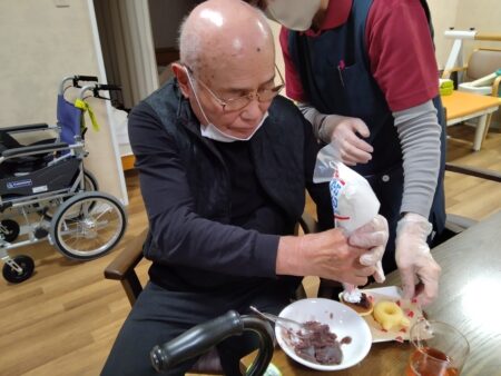スタッフブログ 風の丘鳴海 風の丘リハビリセンター鳴海✡おやつレク 2025年1月23日 こんにちは、風の丘リハビリセンター鳴海です😀 水曜日に手作りおやつレクを行いました! ホットケーキミックスで作ったパンケーキを皆様に召し上がって頂きました。 パンケーキの上に用意したチョコチップ、ホイップクリーム、こしあんを皆様方に 選んでいただきトッピングをしてもらい出来上がった方から食べて頂きました😊✨ 皆様に「美味しい!」「お代わり頂戴!」と言っていただき笑顔があふれ、 皆様口そろえてまた食べたいと仰られていました!! 風の丘リハビリセンター鳴海でした😁