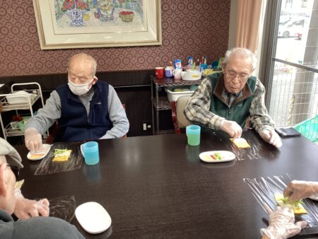 スタッフブログ 植田 👹エルステージ植田👹 2025年2月13日 こんにちは、エルステージ植田です✨ 2月3日のおやつ時間に恵方巻き作りをしました🙌✨ 海苔の代わりに薄焼き卵を使用し恵方巻きの中身には きゅうり、卵焼き、かにかま、桜でんぶを入れました🙌 具材を好きなだけ乗せて、薄焼き卵で巻いて 完成した恵方巻きはその場で召し上がりました😋✨ 「恵方巻きっぽくていいね😁」「もっと食べたいわぁ😋」 と皆様喜ばれていました🙌✨ またおやつレクやりたいですね✨ 👹エルステージ植田👹