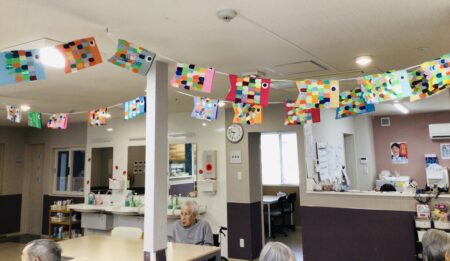 スタッフブログ 岩倉 鯉のぼり🎏✨ 2025年4月26日 こんにちは、エルステージ岩倉です。 気持ちのいい青空がひろがっていますね。間もなく5月に入ります。エルステージ岩倉の食堂にも、鯉のぼりが泳ぎ始めました。 来週、利用者の皆さんと一緒に野菜の苗を植える予定です。楽しみです(≧∇≦) 以上、エルステージ岩倉でした。