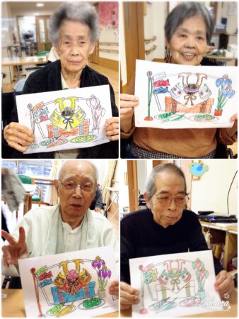 入居者様と一緒に、菖蒲の折り紙を壁に飾りました✨