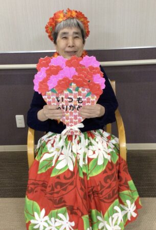 スタッフブログ 岩倉 母の日イベント♪ 2025年5月16日 こんにちは、エルステージ岩倉です。 5月半ばのお昼過ぎ、利用者様へ日頃の感謝を込めて母の日イベントを開催しました。 利用者様のお一方が、以前趣味で使っていたパウスカートを部屋から持って来てくださり、有り難く撮影会で使わせて頂きました。おかげで、他の利用者様も大変喜んでいただき、素敵な笑顔の写真がたくさん撮れました。お写真はこちらです(≧∇≦) 写真を撮った後、お待ちかねのおやつタイムです♪皆さん、とても喜んで頂き嬉しかったです。 以上、エルステージ岩倉でした。