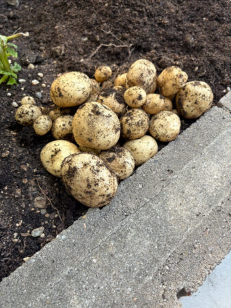 以前エルステージ豊田の花壇に植えたジャガイモが収穫の時期になり芋掘りをしました🥔