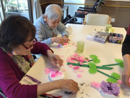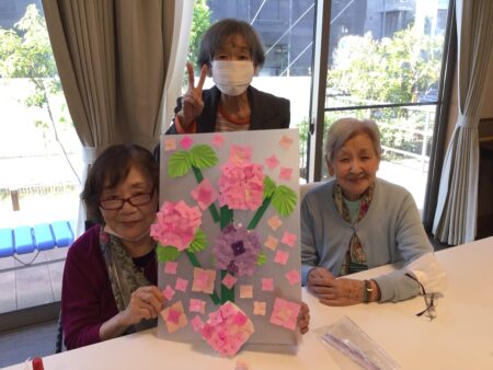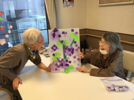スタッフブログ 名東 ☔️エルステージ名東☔️ 2025年6月11日 こんにちは、エルステージ名東です😊 6月になりました☔️ 梅雨入りもして、ジメジメの日々が始まります☔️ そんな中、ご利用者様と 壁画作りをしました☔️ 皆さん、一生懸命作ってくれました😊 今の時期にピッタリなお花、紫陽花です✨️ 「綺麗だねー」 「上手に出来た」 皆さん嬉しそうにお話されていました😊 是非、エルステージ名東の 紫陽花を見に来て下さい😊 ☔️エルステージ名東☔️