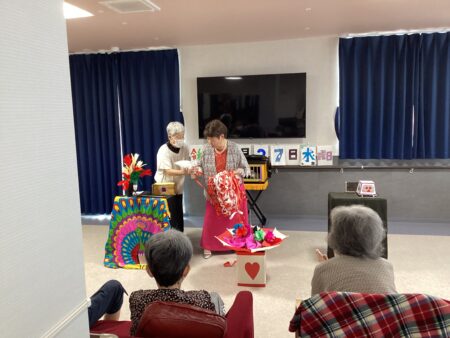 スタッフブログ 弥富 🎉マジックショー🎉 2025年9月8日 こんにちは😃 エルステージ弥富です😍 前回好評だったマジックショーのボランティアの方に来て頂きました。 マジックショーが始まるやいなやびっくりされ口を開けてみえる方もみえました 鳩と現金が出た時は大歓声👏🏻皆さん、お金は大好き欲しい〜と言う声もあがり喜んでました🤗