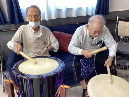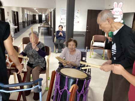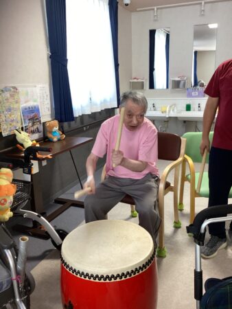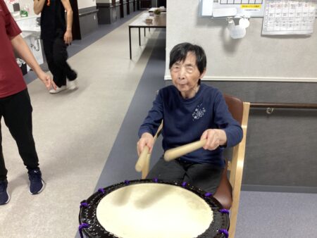 利用者様も太鼓を叩かせてもらいました🥁