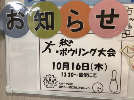 スタッフブログ 岩倉 秋のボウリング大会に向けて 2025年10月7日 こんにちは、エルステージ岩倉です。 来週、「秋のボウリング大会」を計画しています。利用者様と職員が一緒になって準備を進めています。当日は、チーム戦でやってみようか、職員も一緒に参加しても面白いかな などなど、どんどん楽しみが膨らんでいます。 以上、エルステージ岩倉でした。