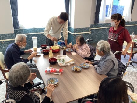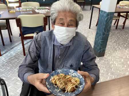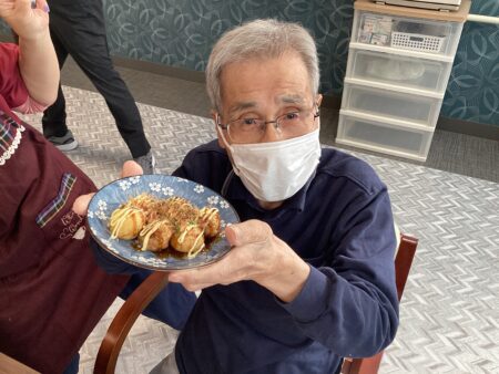 先日、施設で「たこ焼き作り」のレクリエーションを行いました!