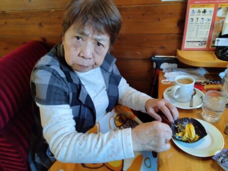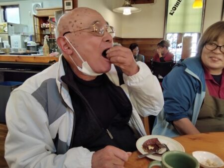 ケーキを真剣に食べているところ、失礼いたしました😆