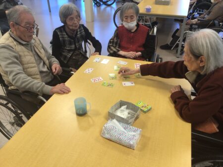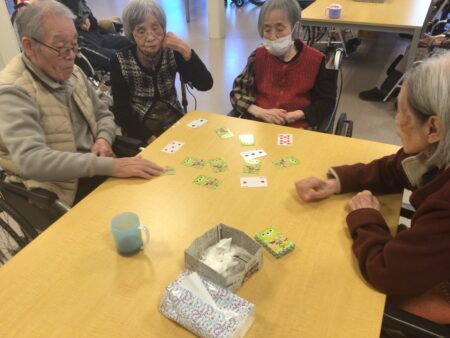 スタッフブログ 豊田 夕食後の会✨ 2025年12月4日 こんにちは😃 エルステージ豊田です🏠 最近、夕食後に一部の利用者様が寝るまでの間にトランプをしています🤗 寝る前のひとときですが真剣勝負です‼️💪 ぐっすり寝れる様、寝る前に頭と体力を使って朝までしっかり寝ます😴😪😴 エルステージ豊田