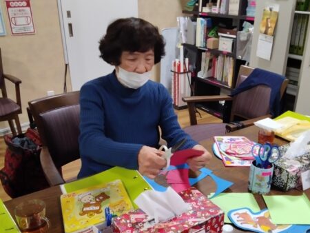 男性方々も台紙に貼る作業をお手伝いして頂きました