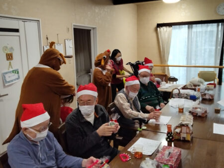 今回はご利用者様たちにたくさんクリスマス飾りをお手伝いいただきまして、